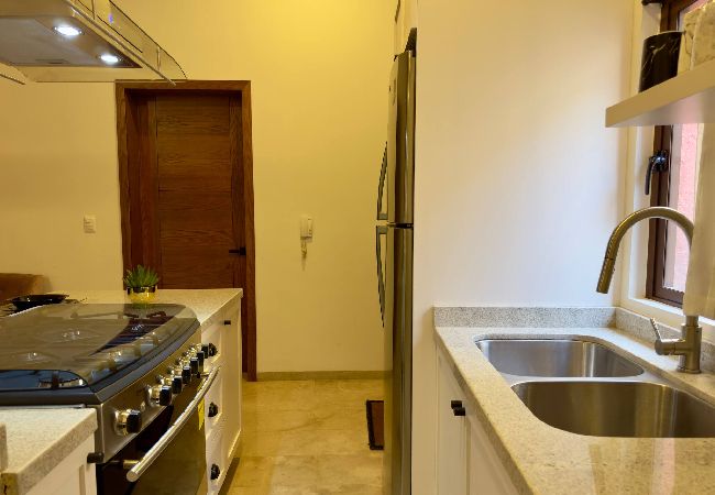 La cucina americana è completamente attrezzata con elettrodomestici all'avanguardia, inclusi piano a induzione, forno a microonde, macchina da caffè, frigorifero e tutti gli utensili necessari per preparare deliziosi pasti. Inoltre, dispone di una pratica zona di lavoro con connessione WiFi per coloro che devono combinare svago e lavoro.