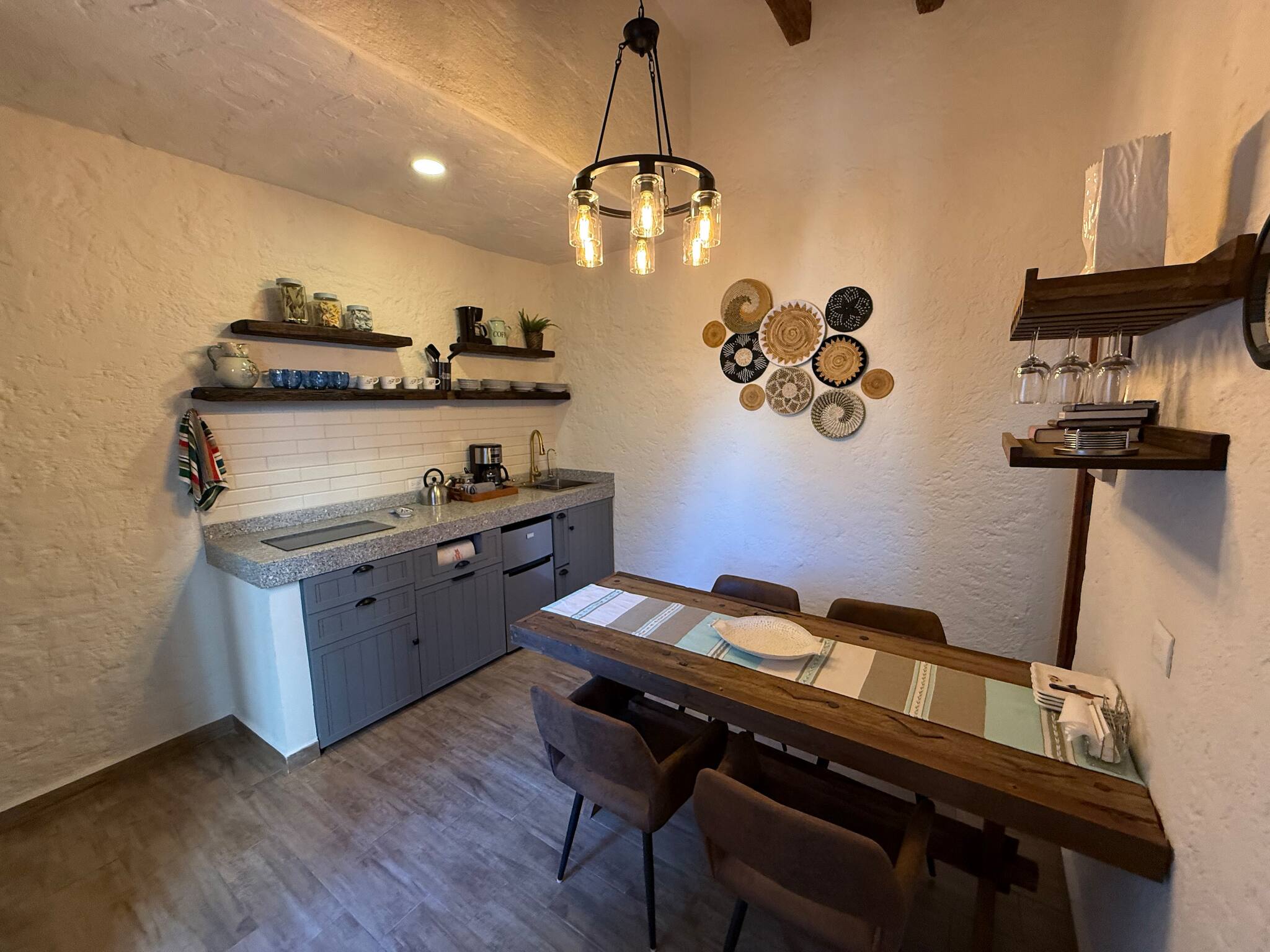 La cucina americana è completamente attrezzata con elettrodomestici all'avanguardia, inclusi piano a induzione, forno a microonde, macchina da caffè, frigorifero e tutti gli utensili necessari per preparare deliziosi pasti. Inoltre, dispone di una pratica zona di lavoro con connessione WiFi per coloro che devono combinare svago e lavoro.