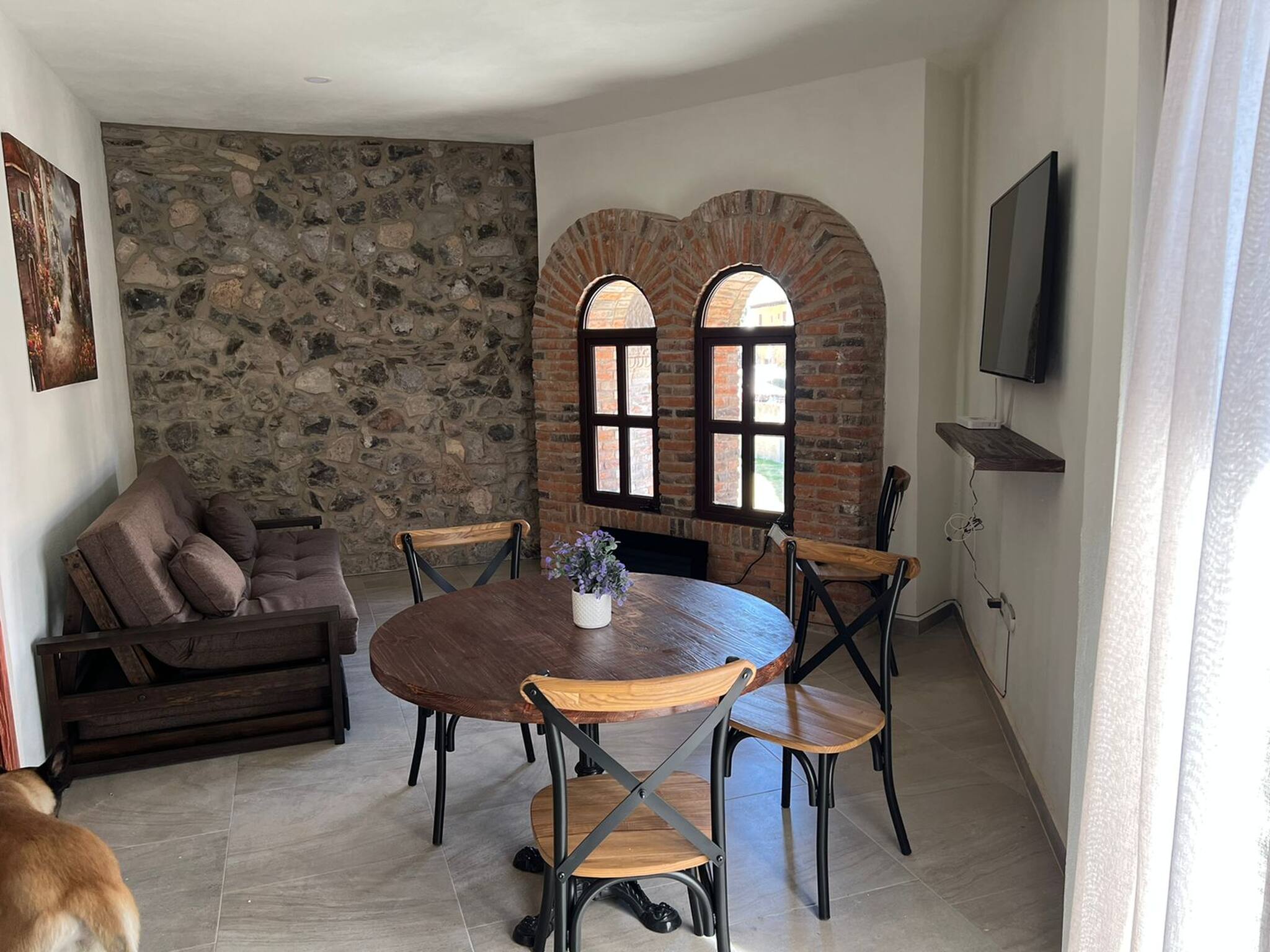 Dispone de mobiliario jardín, asador, chimenea, plancha, acceso internet (wifi), secadora, garage en mismo edificio, 1 ventilador, 1 Televisión.