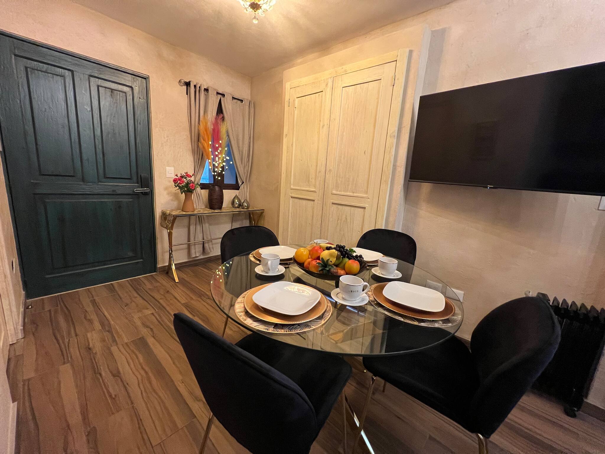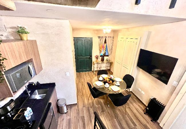 Dispone de plancha, acceso internet (wifi), secadora, estacionamiento en edificio cercano, 2 ventiladores, 1 Televisión.