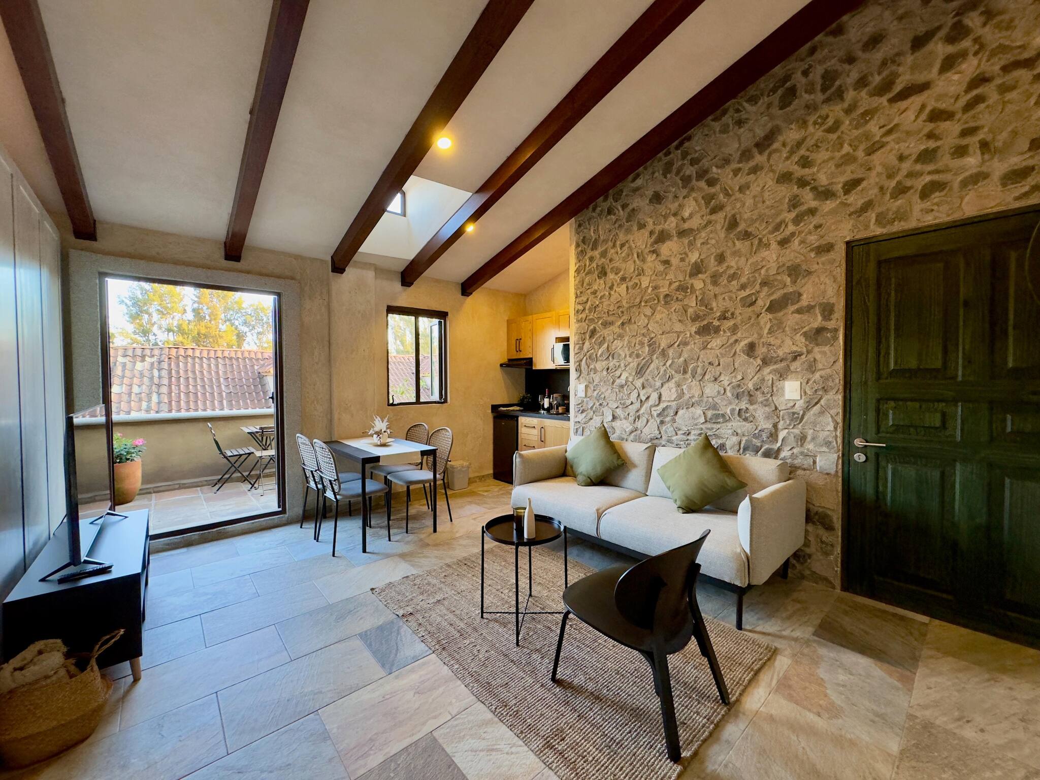 Dispone de terraza, plancha, acceso internet (wifi), secadora, balcón, garage en edificio cercano, 1 Televisión.
