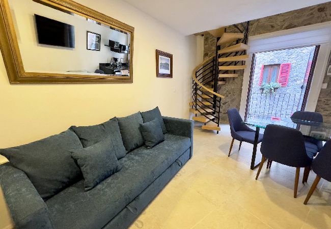 El departamento en Val’Quirico posee 1 habitaciones y capacidad para 4 personas. Alojamiento de 60 m². Dispone de plancha, acceso internet (wifi), secadora, balcón, calefacción radiadores eléctricos, garage en edificio cercano, 1 ventilador, 2 Televisiones.La cocina, de inducción, está equipada con refrigerador, microondas, vajilla/cubertería, utensilios/cocina y cafetera.