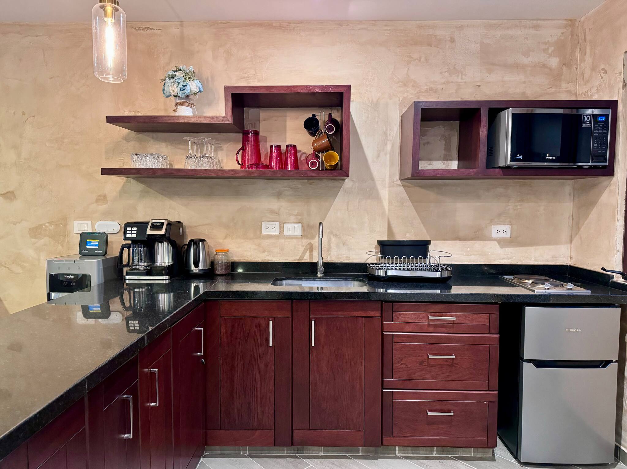 La cocina, de inducción, está equipada con refrigerador, microondas, vajilla/cubertería, utensilios/cocina, cafetera y fogones.