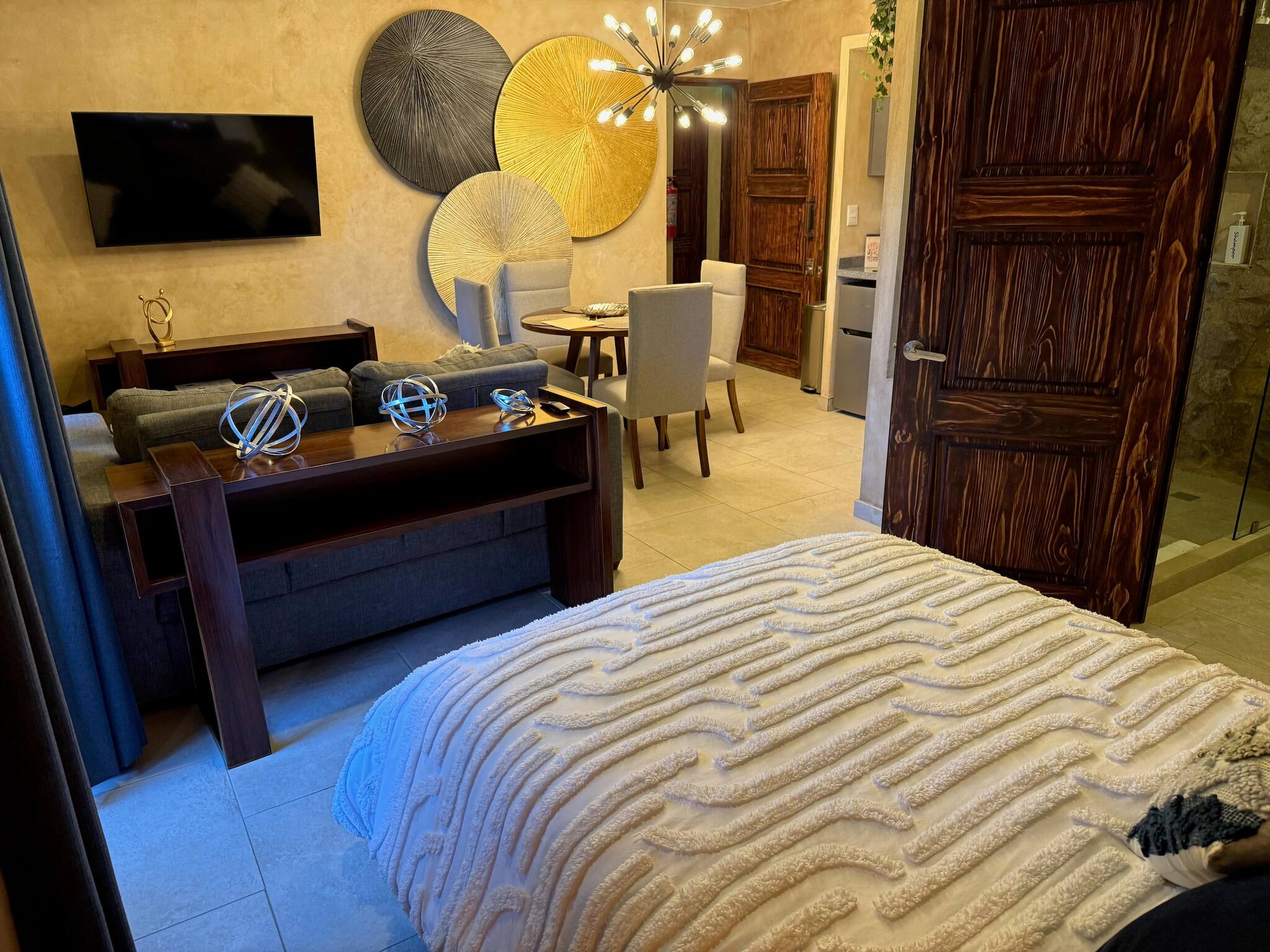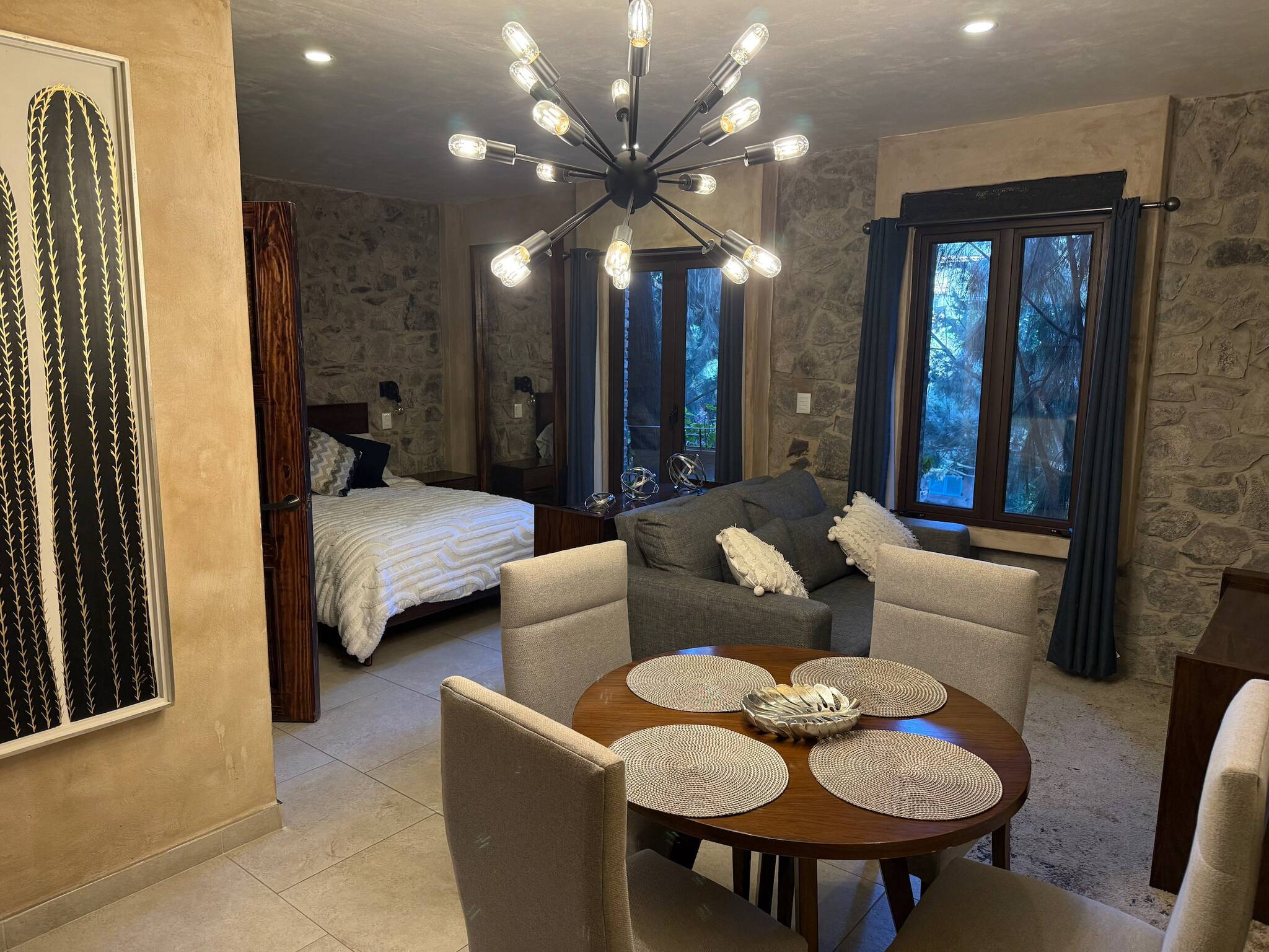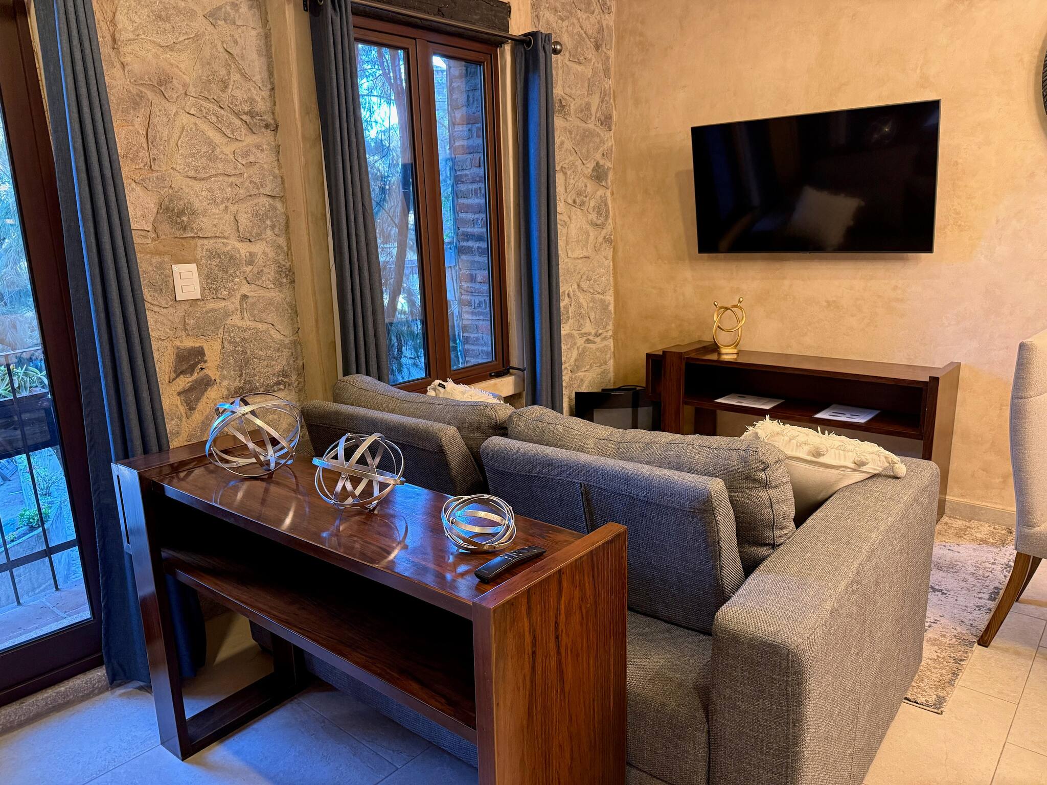 Dispone de asador, chimenea, plancha, caja fuerte, acceso internet (wifi), secadora, calefacción radiadores eléctricos, alberca comunitaria, garage en edificio cercano, 1 ventilador, 1 Televisión.