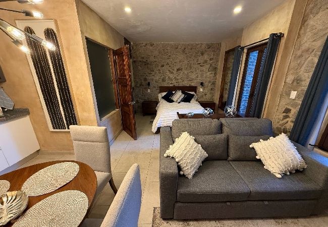 El departamento en Val’Quirico posee 1 habitaciones y capacidad para 4 personas. Alojamiento de 38 m². Dispone de asador, chimenea, plancha, caja fuerte, acceso internet (wifi), secadora, calefacción radiadores eléctricos, alberca comunitaria, garage en edificio cercano, 1 ventilador, 1 Televisión.La cocina americana, de inducción, está equipada con refrigerador, microondas, vajilla/cubertería, utensilios/cocina y cafetera.