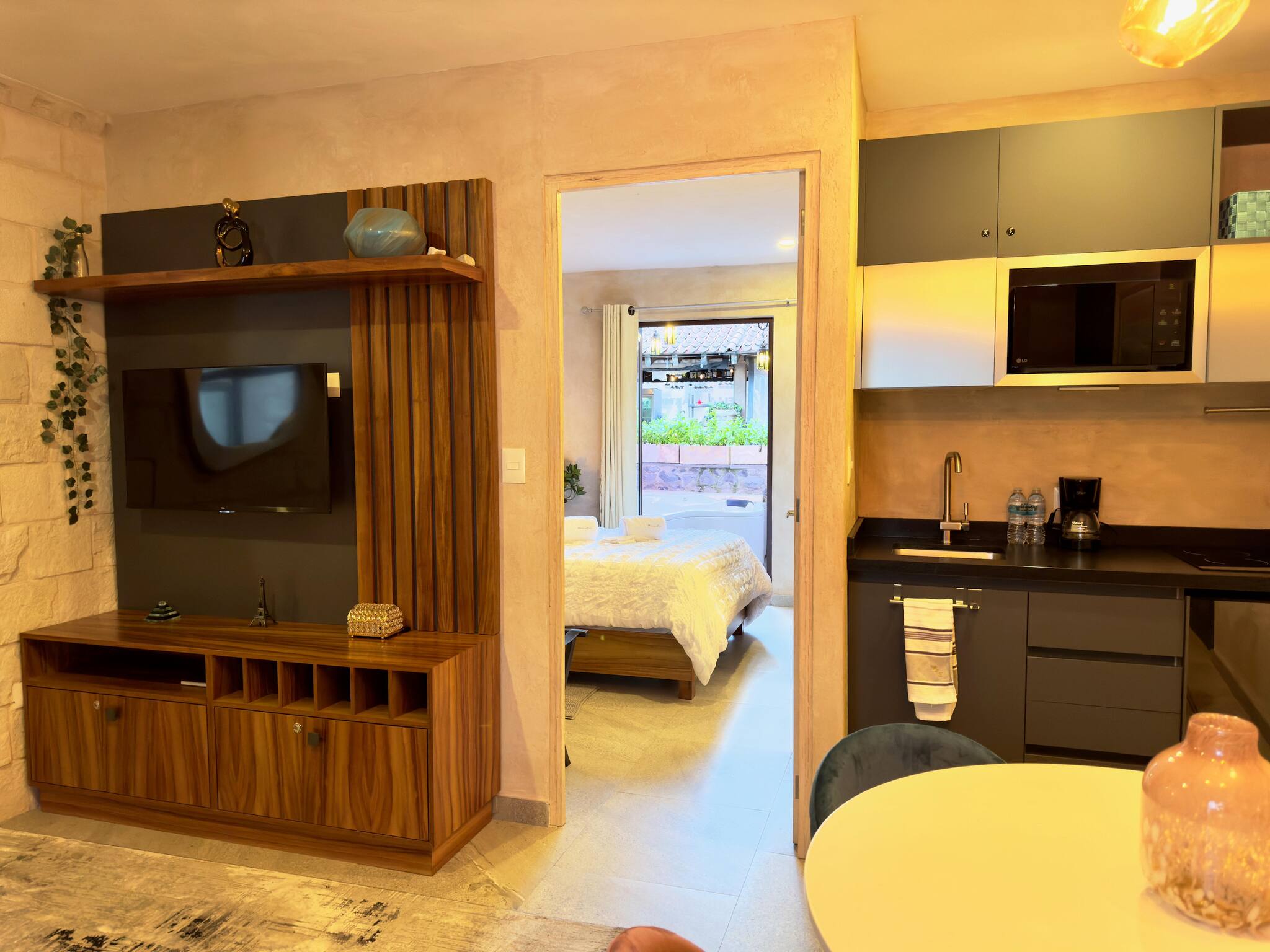 Dispone de terraza, plancha, acceso internet (wifi), secadora, jacuzzi, calefacción radiadores eléctricos, garage en edificio cercano, 1 ventilador, 1 Televisión.