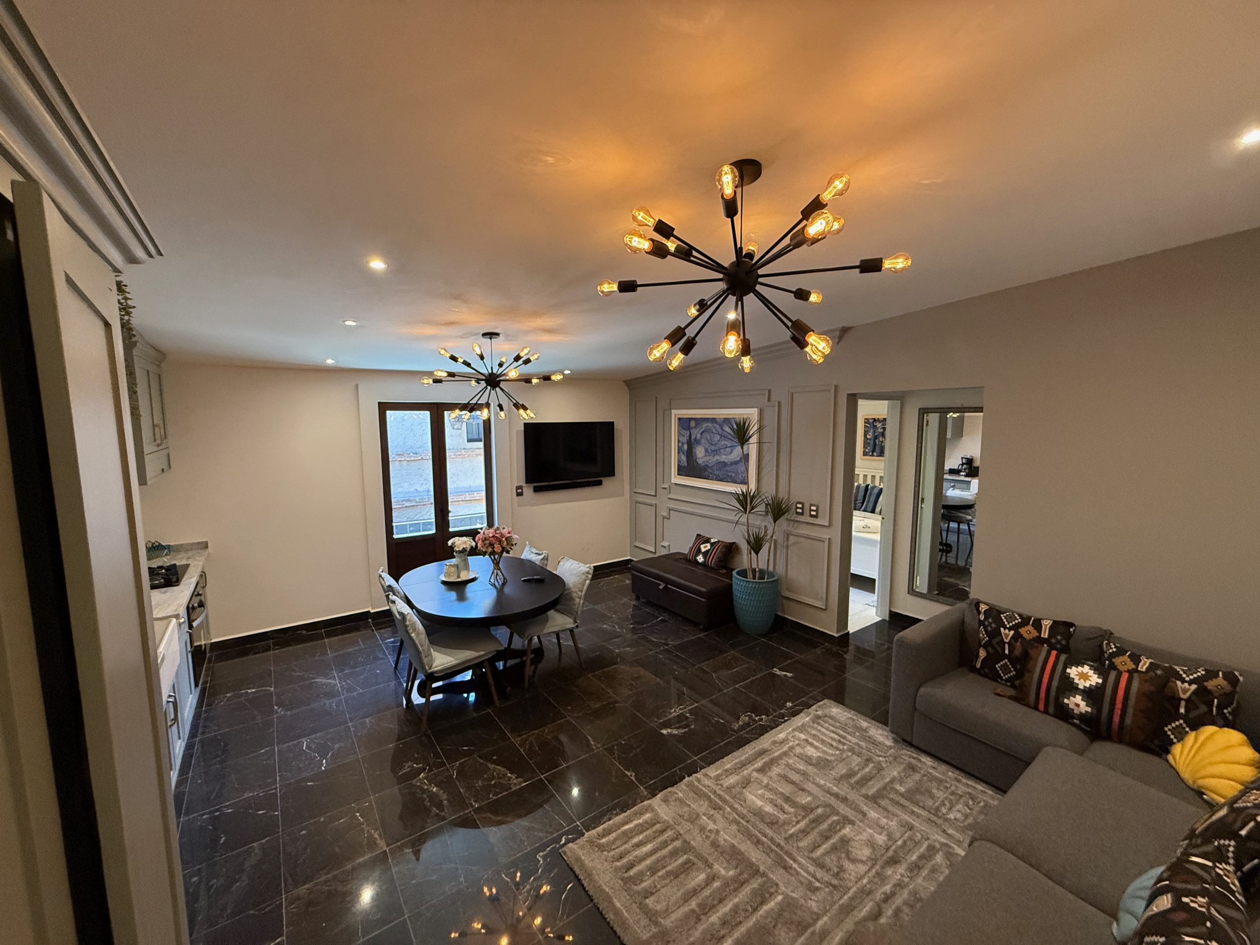 El departamento en Val’Quirico posee 1 habitaciones y capacidad para 5 personas. Alojamiento de 80 m² amueblado con gusto y amplio. Se encuentra a 15 m de la ciudad "Val´Quirico", 25 m del restaurante "La Gran Central", 35 m del restaurante "Casa Tlaxcala", 95 m del restaurante "La Catrina", 100 m del restaurante "La Encomienda", 200 m del supermercado "Oxxo", 7 km del hospital "Hospital General de Nativitas", 16 km del aeropuerto "Aeropuerto Internacional de Puebla", 16 km del campo de Golf "Club de Golf las Fuentes", 18 km del supermercado "Explanada Puebla", 19 km de la ciudad "Cholula de Rivadavia, Puebla", 19 km de la ciudad "Convento Huejotzingo Puebla", 23 km del hospital "Hospital General de Cholula", 24 km de la estación de autobuses "CAPU - Central de Autobuses de Puebla, Carmen Serdan - CAPU Nte, Zona Capu, Heroica Puebla de Zaragoza, Pue.", 25 km de la ciudad "Puebla Centro", 25 km del campo de Golf "La Vista Country Club", 26 km del supermercado "Angelopolis Puebla", 26 km del supermercado "Galerias Serdan", 27 km de la estación de autobuses "Paseo Destino", 29 km del hospital "Hospital Puebla", 29 km del hospital "Hospital Angeles Puebla", 30 km de la ciudad "Ex-Hacienda de Chautla", 49 km del campo de Golf "El Cristo Golf&Country Club", 107 km del aeropuerto "Aeropuerto Internacional de la Ciudad de México", 289 km de la playa de arena "Veracruz", 399 km de la playa de arena "Acapulco" y está ubicado en una zona tranquila y próxima a comercios y restaurantes.Dispone de jardín, mobiliario jardín, terraza, plancha, acceso internet (wifi), secadora, balcón, calefacción radiadores eléctricos, garage en edificio cercano, 1 ventilador, 1 Televisión.La cocina americana, de gas, está equipada con refrigerador, microondas, horno, congelador, vajilla/cubertería, utensilios/cocina, cafetera, hervidor de agua y fogones.