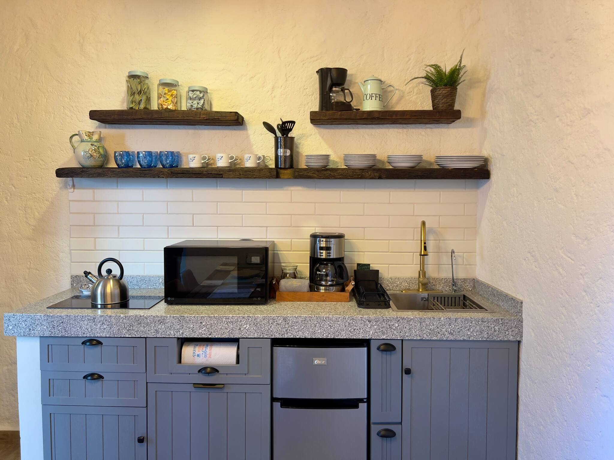 La cocina, de inducción, está equipada con refrigerador, microondas, vajilla/cubertería, utensilios/cocina, cafetera, hervidor de agua y fogones.