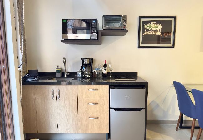 The American kitchen is fully equipped with state-of-the-art appliances, including an induction cooktop, microwave, coffee maker, refrigerator, and all the necessary utensils to prepare delicious meals. In addition, it has a practical work area with WiFi connection for those who need to combine leisure and work.