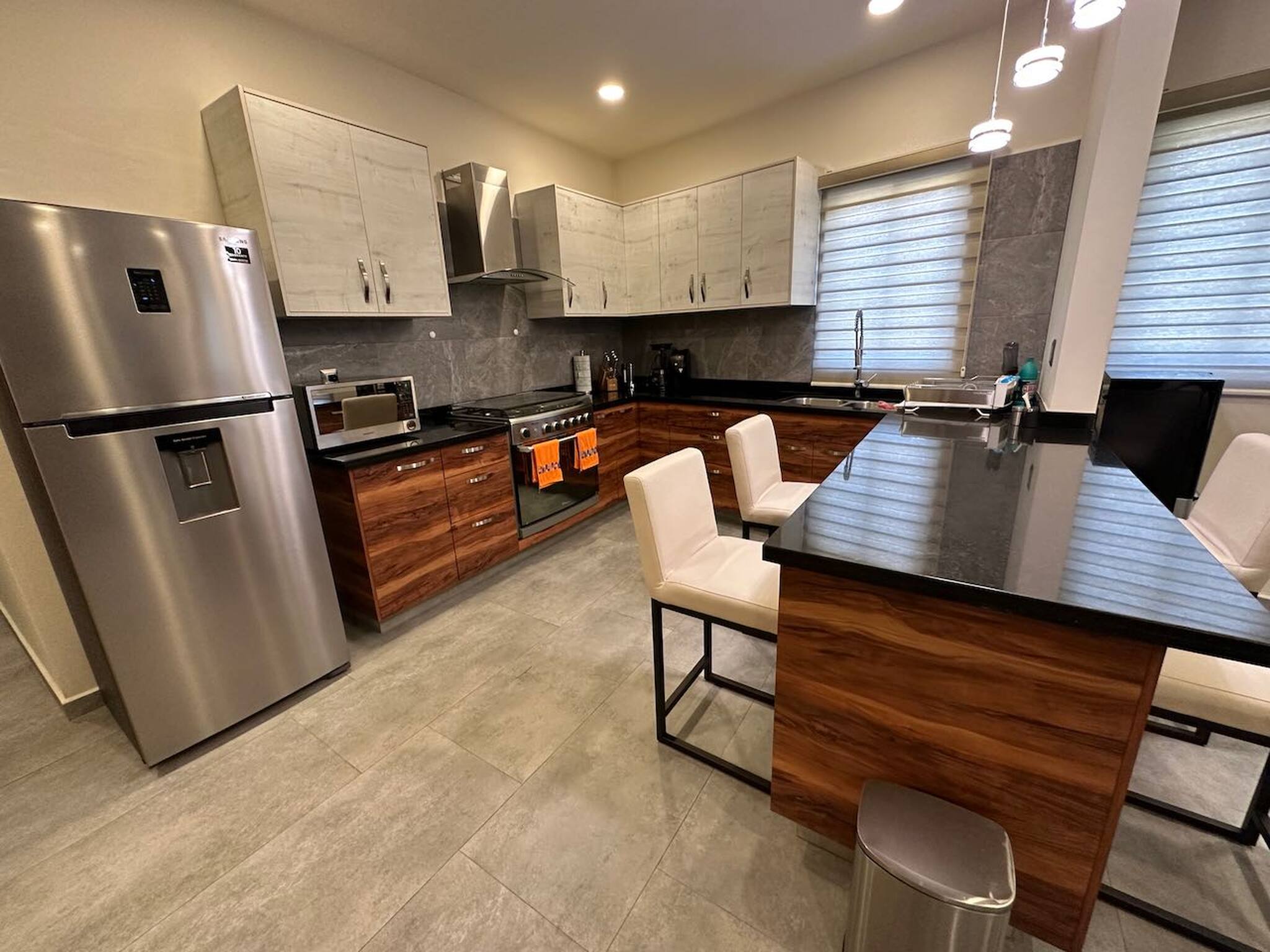 In the gas kitchen, refrigerator, microwave, freezer, dishes/cutlery, kitchen utensils, coffee machine, kettle and stove are provided.
