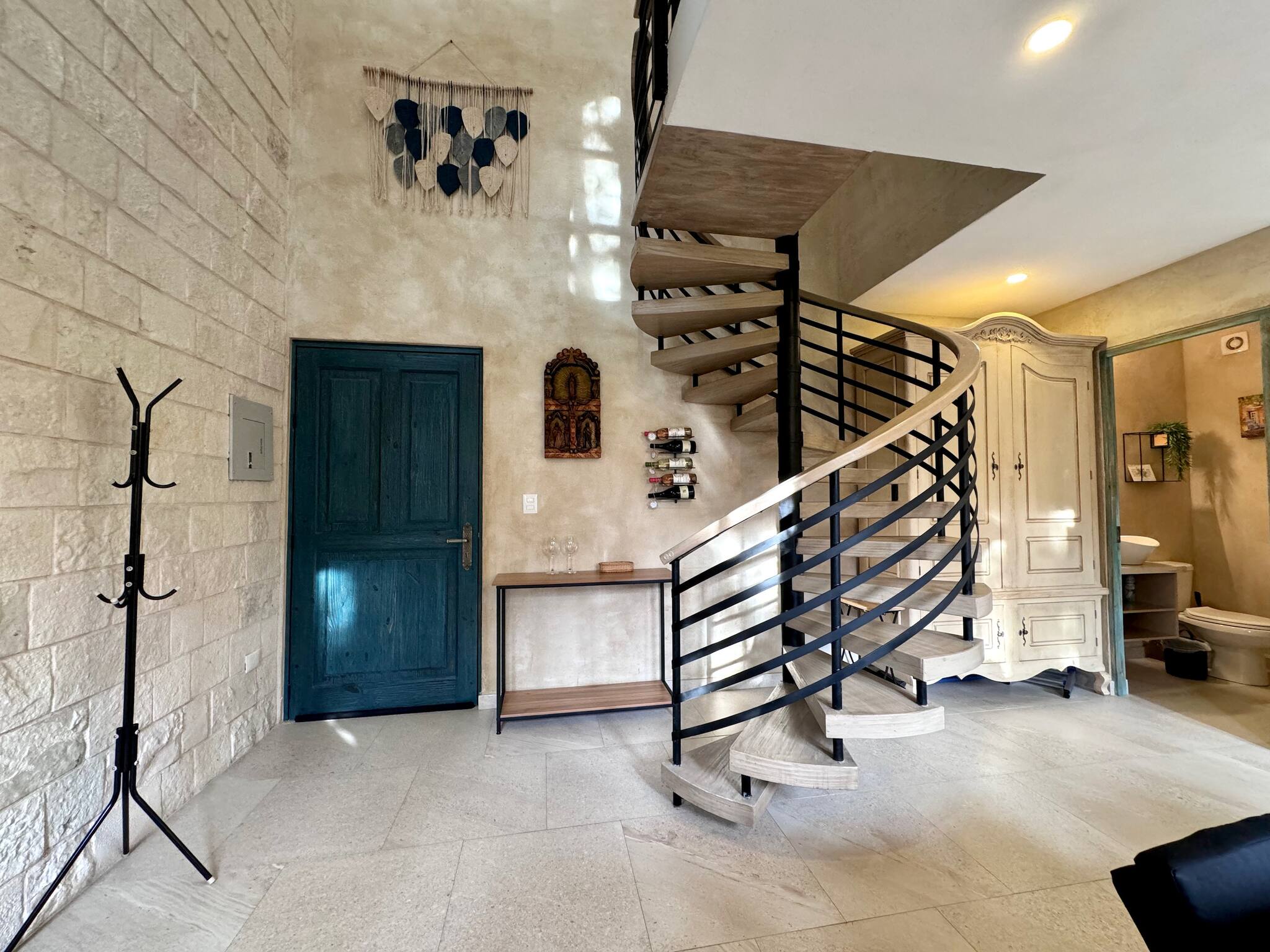 The American kitchen is fully equipped with state-of-the-art appliances, including an induction cooktop, microwave, coffee maker, refrigerator, and all the necessary utensils to prepare delicious meals. In addition, it has a practical work area with WiFi connection for those who need to combine leisure and work.