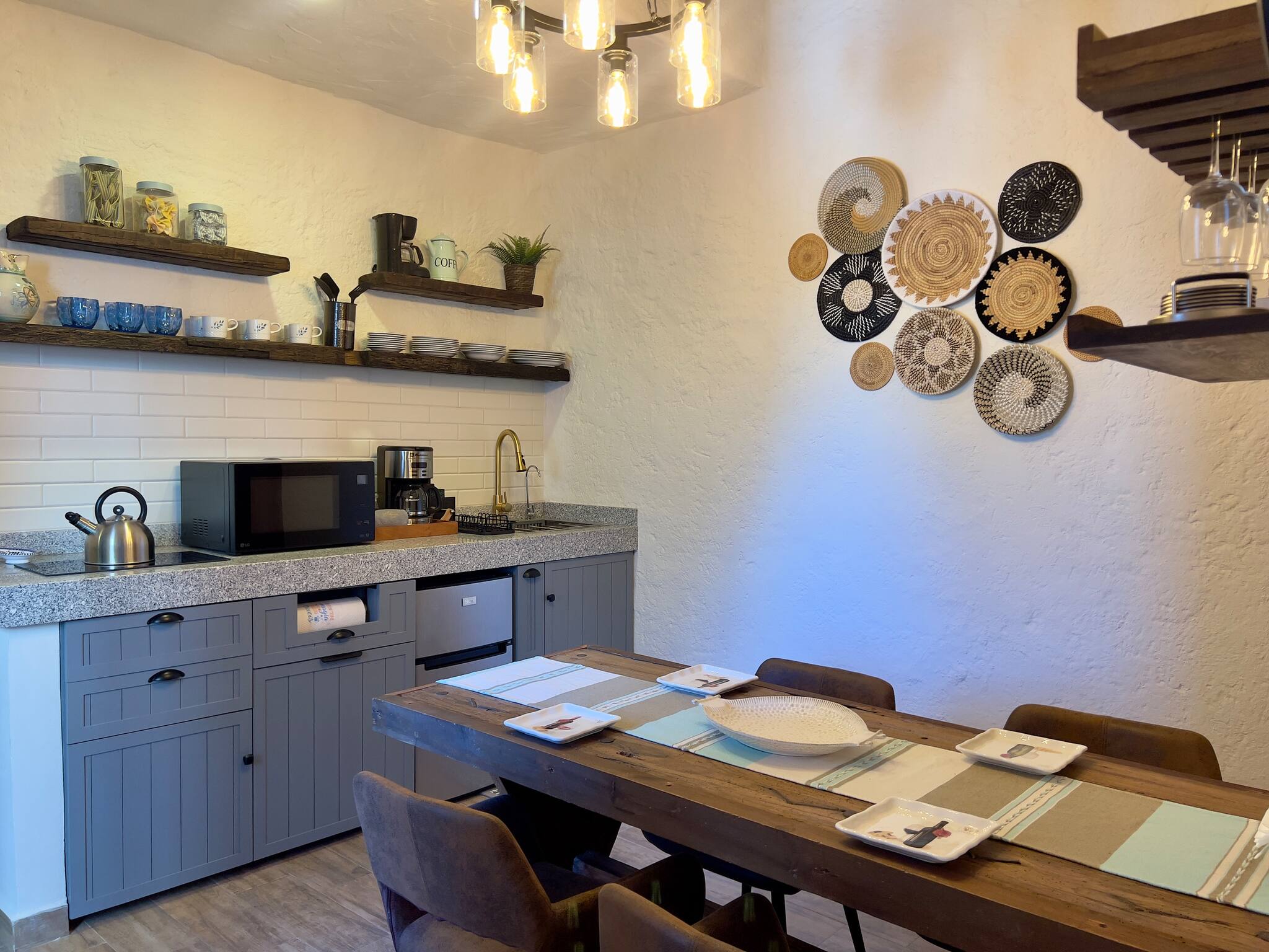 The American kitchen is fully equipped with state-of-the-art appliances, including an induction cooktop, microwave, coffee maker, refrigerator, and all the necessary utensils to prepare delicious meals. In addition, it has a practical work area with WiFi connection for those who need to combine leisure and work.